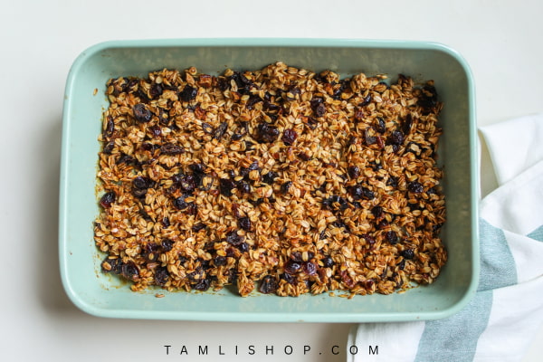 خنک شدن کامل : حداقل ۲ تا ۳ ساعت ( یا حتی بهتر، یک شب ) به گرانولا فرصت دهید تا در دمای محیط خنک شود.
