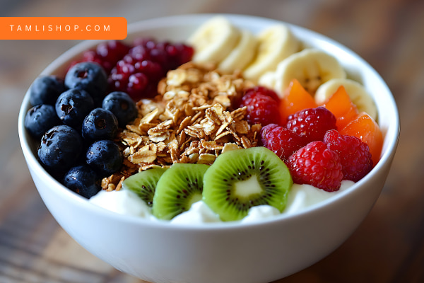 ترکیبات کلاسیک ، گرانولا با ماست و میوه های تازه :